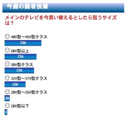 今週の読者投票:テレビの大型化傾向が改めて浮き彫りに - 60V型以上を狙うユーザーも多数