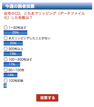 今週の読者投票:CDを「100枚以上」リッピングしたという回答が「36%」に