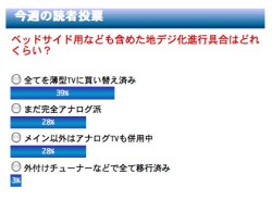 4月26日〜5月6日の読者投票:ベッドサイド用なども含めた地デジ化進行具合はどれくらい?
