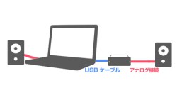 そしてUSB-DACというのは、パソコンのUSB端子に接続して使うDACのことだ。接続の流れとしては、パソコン→USB-DAC→パワードスピーカーとなる。