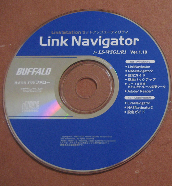 SEKRIT DS-Iが届くまでの間に、まずNASを仕入れることにした。バッファロー・リンクステーションミニLS-WS500GL/R1。NASをルーターにつなぎ、付属のセットアップソフト(CD-ROM)をパソコンにインストールする。指示どおりに進めて、迷わず完了。