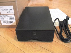 SEKRIT DS-Iを開梱したところ。これにセットアップ用のCD-ROMも付いてくる。 | ルーターを中心に、DSとNAS、パソコンをLANで接続する。NASはデータファイルの倉庫(外付けハードディスク)、ルーターは中継基地だ。 |