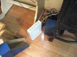 白いボックスがルーター、向かって一番右の黒いボックスがNAS。電源タップや配線のごちゃごちゃは、私は100円均一の書類ケースで隠して収納。 | NASやルーター、DSを初めて使う際はセットアップをする。付属CD-ROM、あるいはメーカーホームページからセットアップソフトをインストールする。NASは汎用性の高いものなので、あっというまにできてしまうし、ルーターは元々持っている場合改めてセットアップする必要はない。 |