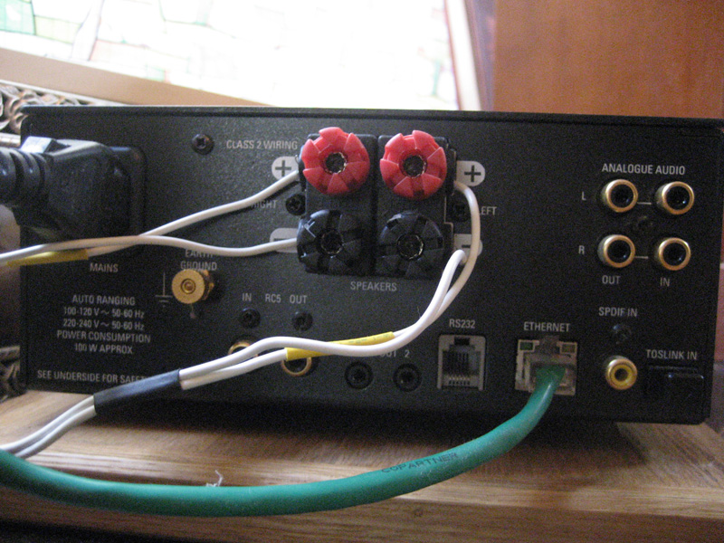 DSやNASのセットアップソフトをインストールしておく(必要であればルーターも)。音楽データはパソコンからNASに移動しておく。 | DSはプレーヤー(再生機)なので、音の出力はDSのアナログアウトからアンプ→スピーカーというふうにつなげばよい。私の使っているSEKRITDS-Iはアンプ内蔵型なのでスピーカーをつなぐだけでOK 。 |
