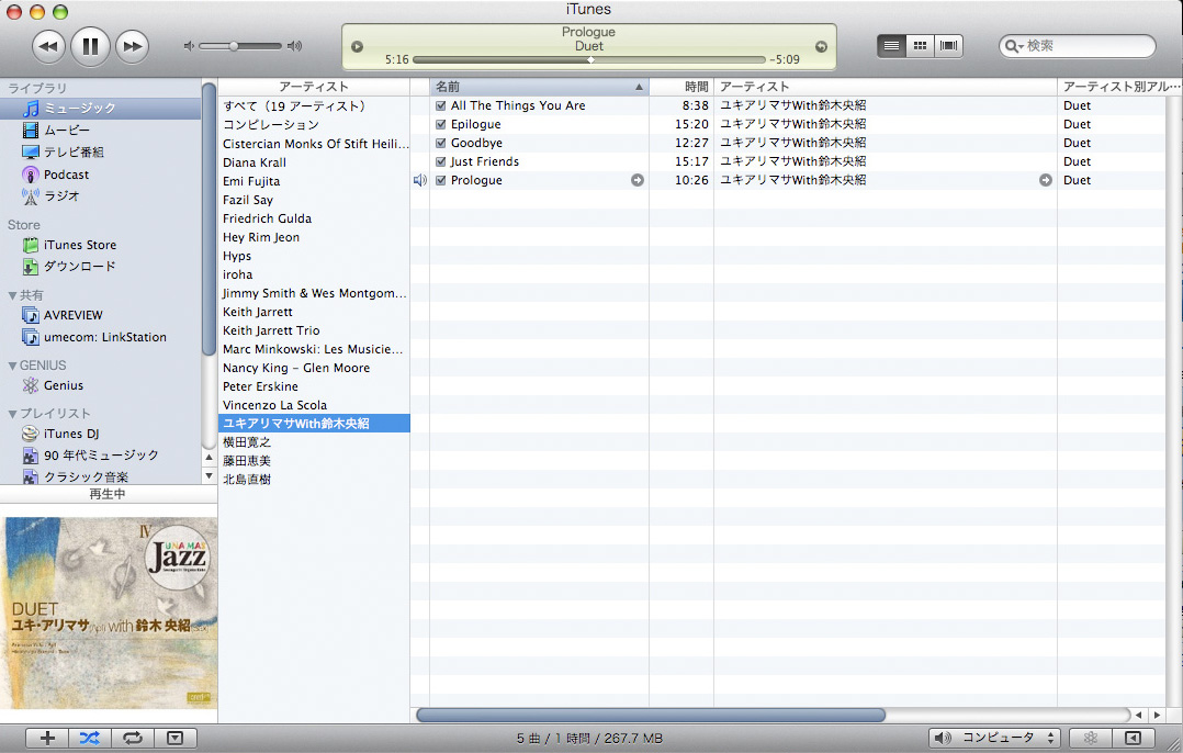 個人的には、これでようやくアルバム管理ができるようになりそうな予感がするので、このままタグ情報が確実に付けられるファイル形式(私はiPodも併用できるよう、可逆圧縮のApple Losslessを使用)を使っていこうと考えている。が、非圧縮のWAV形式にこだわりたい方でも、ソフトウェアの組み合わせでアートワーク表示が可能になるというわけだ。