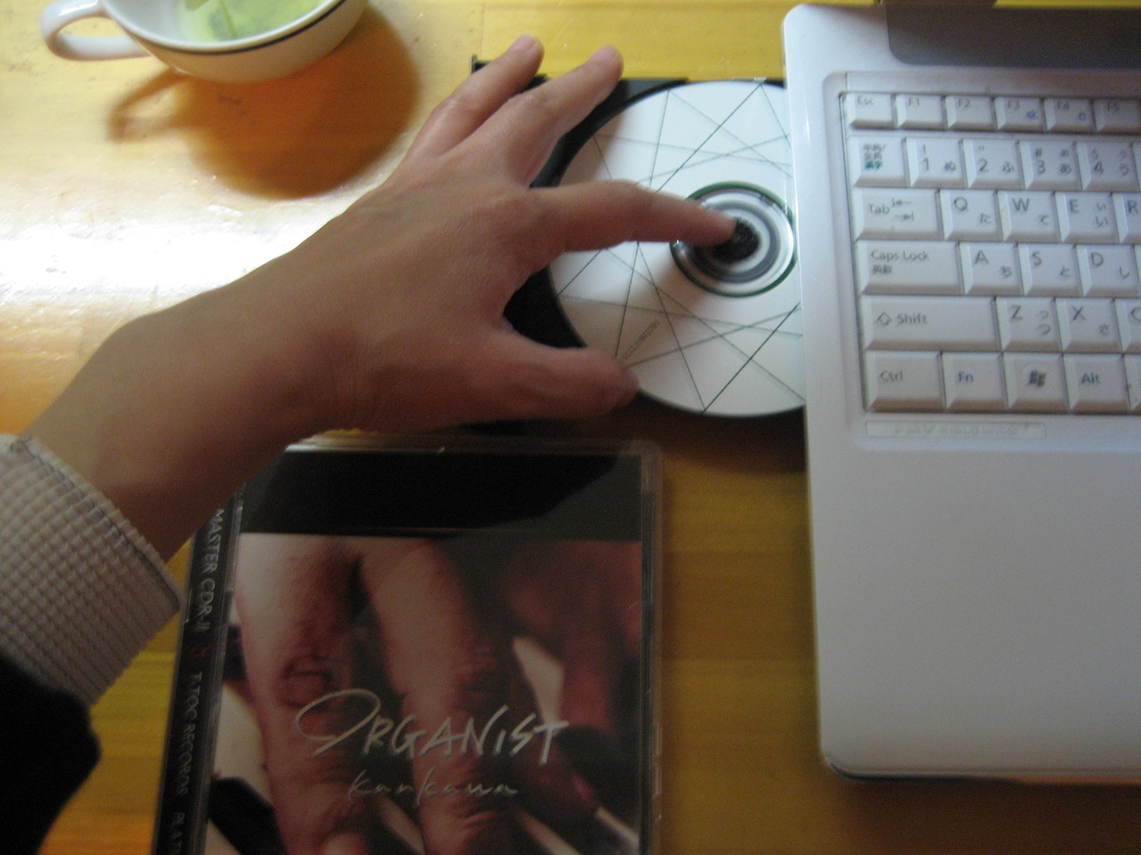 今日はこれらのCDをリッピングしよう。オルガニストKANKAWAが昨年末にリリースした2枚である | パソコンのディスクドライブにディスクをセット。 |