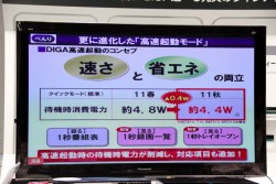 エコ性能では、高速起動の「クイックモード」(標準)をさらに進化させ、待機時消費電力を、11年春モデルの約4.8Wから、約4.4W(BZT810/710/BWT510/BRT210の場合)へと、さらに減らした。また省エネと操作レスポンスを両立させ、クイックモード標準時に、約1秒で「録画一覧」を表示させることが可能になったほか、トレイオープンも約1秒で行うことも可能になった。
