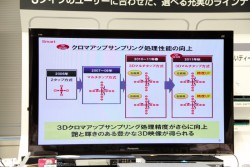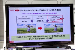 クロマアップサンプリングの処理性能向上では、2010年〜11年春モデルで実現していた、3D映像で右眼用/左眼用映像それぞれにマルチタップ方式でサンプリングを行うという機能は継承しながら、新たにサンプリング処理精度を高めた。これにより、艶や輝きのある、豊かな3D映像を実現したと説明している。