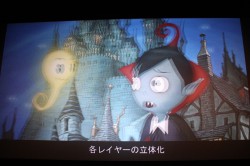 「2D→3D変換」のメリットは「既存の2D映像も3D化ができること」「肌修正など素材の修正が容易なこと」「立体感の調整ができること」「左/右の素材の色の差が出ないこと」、そして何より「3D空間として『嘘』をついているレイアウトでも、不自然さのない3D化が可能なこと」が挙げられるという。三田氏は「手描きのキャラクターや背景など、2Dとしてデザインされたものを3D化するには、画像から立体映像を作れる2D→3D変換技術が最も無理なく立体化できる技術だ」と語る。