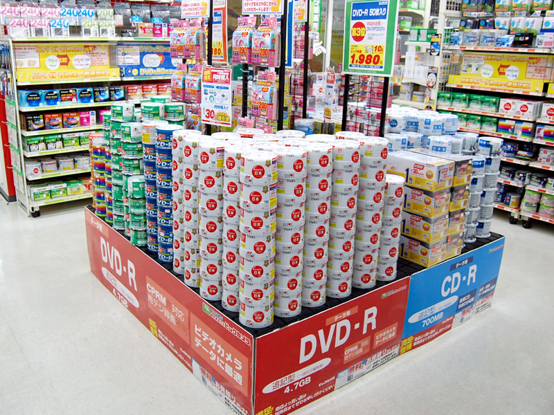 ■大切なメッセージを店頭からも積極発信 ザッツ「がんばろう!日本」に込めたメッセージをお客様に届けていくために、大きな役割を担うのが店頭だ。ビックカメラではお客様の目に飛び込んでくる山積み展示など、「がんばろう!日本」の積極的な展開を行っている。  | | 記録メディアコーナーの一角に広いスペースを割き、山積みで展示されるザッツ「がんばろう!日本」 |