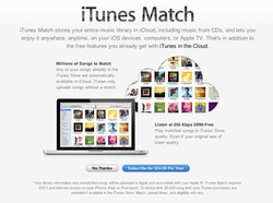 Appleが北米でのみサービス提供している「iTunes Match」は、手元にある音楽データをクラウドへアップロードし、iTunes Storeで取り扱いのある曲と判定されれば、いつでもその曲をiTunes Storeの品質で聴けるようになる。たとえば、アップロードしたMP3 128kbpsと同じ曲がiTunes Storeにあると判定されれば、iTunes Plus(AAC 256kbps/DRMなし)の曲をダウンロードできる。