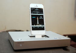 デジタル接続が行えるiPodトランスポート、「ND-S1」(現在は販売していない)にアダプタ経由で接続してみた。アダプタとiPhone 5の二段重ねで利用するスタイルとなるため、安定感がなく、見た目にも不格好になる。特にこのシリーズはドック端子部の制振性にもこだわっているのが特徴の一つだが、これでは自慢の制振性の効果が発揮されない。