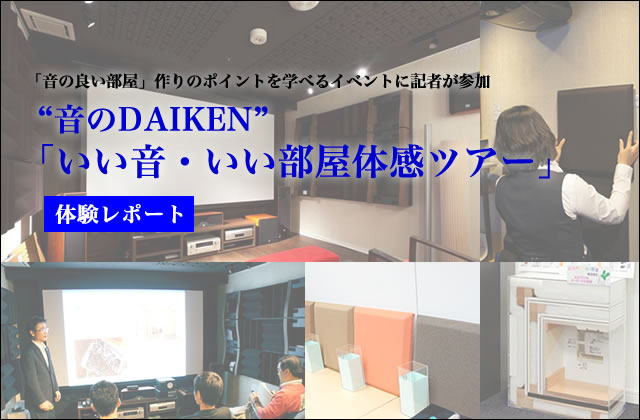 オーディオビジュアルファンにとって大きな関心事である“音”。建材メーカーとして住宅内の音環境に対する研究を長年続けている“音のDAIKEN”こと大建工業では、前回の記事(関連記事)でも紹介したように、年に数回、「音の良い部屋」を作るためのポイントを学べる「いい音・いい部屋体感ツアー」を開催している。同イベントではどんなことが行われているのか?ファイル・ウェブ編集部が潜入した。