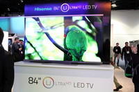 4K関連では、HisenseとTCLが、ともに世界最大となる110型の4Kテレビを展示した。サムスン電子も110型の4Kテレビを出展しており、「最大画面サイズの4Kテレビ」という称号はこの3社が分け合った格好だ。パネルは同じものである可能性が高いが、画面の大きさで耳目を集めようという積極姿勢は評価に値する。そのほかHisenseは、84型の4Kテレビ試作機も展示していた。