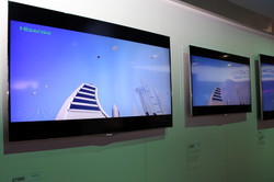 この2社と比べると、演出がおとなしい日本メーカーのブース展開が、いかにも地味に見えてしまう。より活気のあるブースには人が集まるもので、サムスンやLGは常に黒山の人だかり。一方の日本メーカーは、それなりに人は入っているものの、ブース内を歩くのに苦労するほどではない。技術面ではかなり高度なものを展示しているだけに残念だ。
