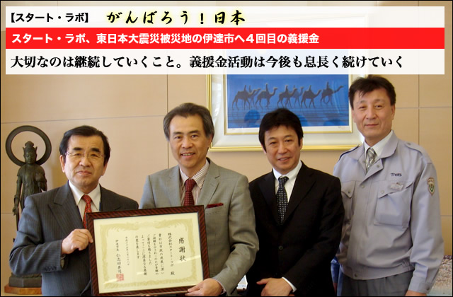 | ■義援金と「がんばろう!日本」DVD-Rを寄贈 − スタート・ラボの復興支援活動 |