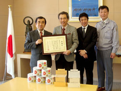 「地域への社会貢献活動の一環として、そして、被災地復興へ向けた長期的かつ継続的な活動としてスタートさせました」と語る揚社長。2011年10月には最初の義援金を寄付(関連記事)。以来、2012年3月、9月、そして今回と、継続して半期に一度、同市に100万円の寄付を行っており、今回が4回目となる。