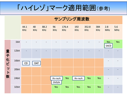一方、デジタルオーディオ製品のハイレゾ対応については、JEITAの定義と一部異なる点があり、ビット数が大きくてもサンプリング周波数が低い音源をハイレゾ対応機器から外すなど、オーディオ協会の基準の方が対象を絞り込んでいる。