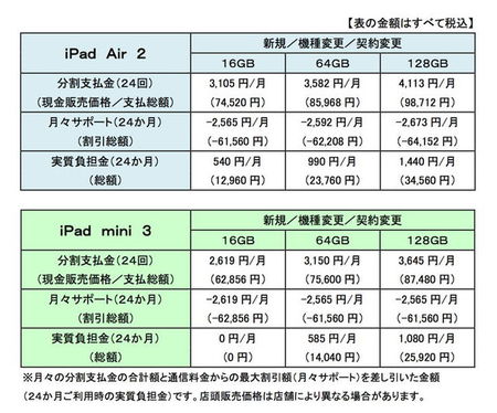 どこがお得?「iPad Air 2」「iPad mini 3」の機種代金やキャンペーンを3キャリアが発表