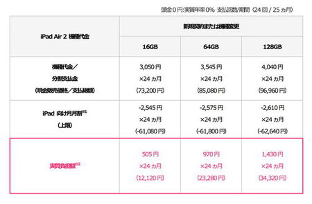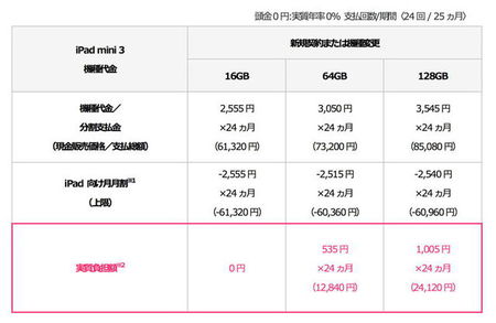 ソフトバンクモバイル、NTTドコモ、KDDIの3社は、10月下旬から発売するアップルの新タブレット「iPad Air 2」「iPad mini 3」(関連ニュース)の機種代金や特典キャンペーンを相次いで発表した。