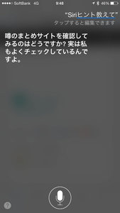 そこで実際に日本語で「ヒント教えて」とSiriに聞いてみると、「噂のまとめサイトを確認してみるのはどうですか? 実は私も良くチェックしているんですよ」との回答。うまくはぐらかされてしまった。