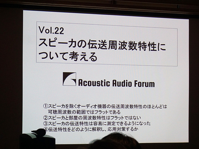 “オーディオファンや音楽家のため”を謳う防音工事専門会社アコースティックデザインシステムが主催する試聴会「第22回Acoustic Audio Forum」が開催された。「スピーカの伝送周波数特性について考える」をテーマに、オーディオの音質向上を考えた様々な解説やデモが行われた同イベントの模様を徹底レポートする。