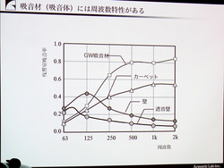 そして、一般に繊維素材は中高音域を吸音するものであり、低音域にはほとんど効果を発揮しないことを紹介。繊維素材の吸音アイテムばかりを多用しすぎると音の周波数バランスが崩れてしまうため注意するべきだと語る。