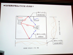 その工事の結果、オーナーからは「同じ機材なのに低音域が豊かに鳴るようになった」と感想をもらったとのこと。「なぜこんなに変わったのか。そのポイントは3つある」と岩元氏は説明する。