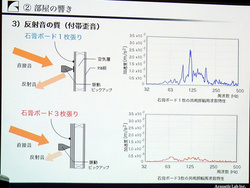 イベントでは、現代建築で一般的に用いられている構造の壁の模型も用意。鈴木氏は「昔は土壁だったため音が反射しなかったが、今の日本の建築では壁がビビって音が濁ることが多い。いくら美しい直接音が出ていたとしても間接音で音がディスターブされる」と、間接音を意識する重要性を説く。