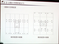『良い音の3大要素』の3点目、「音像の空間的拡がり」については「鏡像の空間配置」という考え方を紹介。