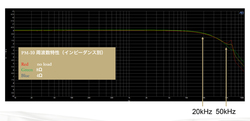 しかし、Hypexは同社の特許技術によって、ローパスフィルターの後段でNFBをかけるため、インピーダンスによる周波数特性の変化が起こらない。これにより周波数特性がスピーカーの負荷によって変化せず、さらには低歪化も実現できる。