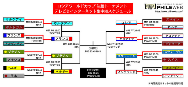 そして明日土曜日7月7日は23時から「ロシア対クロアチア」、27時から「スウェーデン対イングランド」が行われる。こちらの2試合はNHKが担当。テレビはNHK総合、ネット配信はスマホアプリ(Android/iOS)かウェブブラウザ(ワールドカップ特設サイト)で視聴できる。