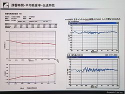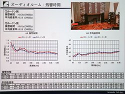 「響きは低中高の音域ごとの周波数のバランスによって決まる」(同社 鈴木代表)とし、スピーカーを生き生きと鳴らすには、部屋の響き、つまり残響時間をどれくらいにするべきなのかといったことが解説された。