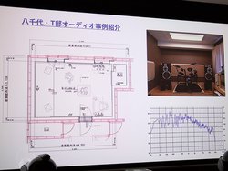 休憩を挟んで後半は、同社が手がけた過去事例を紹介。どんな部屋を、どんなふうに工事したのか。その際に留意したのはどんな点なのかといったことが、測定データという裏付けも添えて解説された。