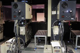 実際の上映は、70mmフィルム映写機を2台並べ、1巻ずつ交互に上映していく。1巻目のリールは左側の映写機、2巻目は右側の映写機、3巻目は左側…といった具合だ。