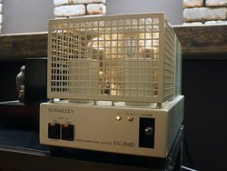 また、注目オーディオ機器の紹介パートには、真空管アンプメーカー「サンバレー」の製品が再登場。直熱三極管“845”をフィーチャーしたブースターアンプ「SV-284D」をアコースティックラボのリファレンスシステムに組み込み、B&W「802D3」をドライブしての音出しデモが披露された。