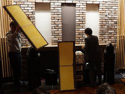 テーマは「吸音配置とステレオ再生パターンの関係を実験・試聴する」で、「客観的に対象的に音を音像として聴くのか」「楽音のリアリティを音楽空間の再生として聴くのか」というステレオの愉しみ方の基本スタイルを確認、実験・試聴するという。