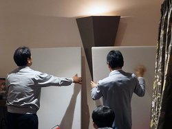 当日は、部屋からすべての吸音材を外した状態、適度な吸音材を設置した状態、さらに吸音材を増やした状態という3つの異なる状況を作り出して、その違いを体験するデモを実施。