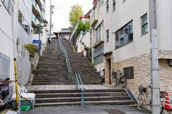 2戦目の舞台として選ばれたのは、秋葉原・神田明神の裏口に位置する、明神男坂。68段の階段となっている。こちらを駆け抜けて撮影すれば、非常に不安定な動画が期待できるので、性能を比較するにはうってつけの場所だ。今度はこちらで先程のセットを手に持ちながら走ってみた。