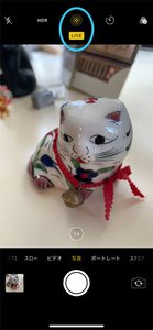 カメラアプリを開いて「写真」モードを選択後、画面上部にある「Live Photos」ボタンをタップして黄色に変わったら、シャッターボタンを1度短く押すだけ。画面に「LIVE」のアイコンが表示されている間にLive Photoが記録される。