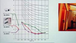 さて、リビングなどではなく専用のオーディオルームでの静けさを妨げる要因になり得るものと言えば、やはりエアコンの稼働音が筆頭だろうか。同社代表の鈴木氏は「我が家の自宅のエアコンの稼働音は、“強”だと44.4dBくらい。これではオーディオでは聴けたものではない。おやすみモードなどの静かな状態でならなんとか聴けるレベルだ」と自身の環境を紹介。「エアコンの稼働音は250Hzあたりの低音域が騒音として顕著に感じる帯域だ」と説明する。