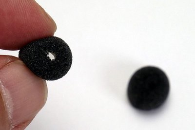 それもそのはず。360 AIR EAR SPONGEのイヤーチップの穴は、めちゃめちゃ小さい。しかもその穴がセンターからズレている。これでは音がマスクされて当然だ。