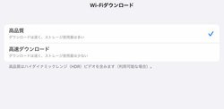 ダウンロードオプションも、モバイル/Wi-Fiともに、高品質と高速ダウンロードの2種類から選べる。こちらは画質より、ダウンロードの速さと使用するストレージ容量が目安として示されている。