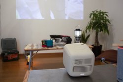 まずは、今年ことごとく中止となった夏フェス気分を味わいたい! ということで、ライブ映像を流していく。プロジェクターは小さめのテーブルに置いて位置を調整。BenQのGS2は、若干上向きに角度が付けられるので、椅子に座って見るのにベストなサイズになるよう整えたら、オートフォーカス機能で自動調整。また独自のLumiExpertテクノロジーが周辺光レベルを自動的に検出し、適切な明るさに調整してくれるなど、とにかく簡単に使いこなせる。