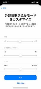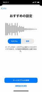 迷わず進み、ヘッドフォン調整をオンにする。「カスタムオーディオ設定」という項目があるので、これをタップして進もう。