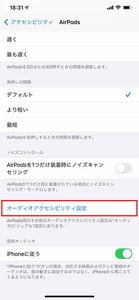 音質や外部音取り込みレベルを調整するには、設定→アクセシビリティ→AirPodsと進む。その中に「オーディオアクセシビリティ設定」という項目があるので、これをタップ。すると「ヘッドフォン調整」という項目が現れる。