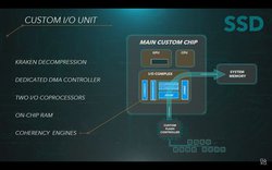 その高速性は、SSDという記憶装置そのものの技術革新で実現されたわけではありません。SSDに保存するデータは圧縮処理を施しコンパクト化しておき、それをSoC内に設けた専用回路(I/O Complex)で読み出すのです。SSD側にも特別にカスタム化されたフラッシュメモリコントローラが搭載され、データ転送の高速化を助けます。圧縮処理によりデータサイズが小さくなり、さらに特別な回路で高速転送されることにより、激速が実現されています。
