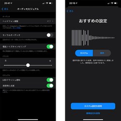 さらに深く「オーディオアクセシビリティ設定」に入り、トップに並ぶ「ヘッドフォン調整」から「カスタムオーディオ設定」を選ぶと、対応するイヤホン・ヘッドホン(AirPodsシリーズ/Beats)によるサウンドの聴こえ方をアレンジできる。