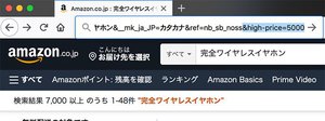 「&high-price=○○○○」は、指定した金額以下の商品のみ表示します。たとえば、「完全ワイヤレスイヤホン」の検索結果を表示しているとき、URLの末尾に「&high-price=5000」をくわえると、「5000円以下の完全ワイヤレスイヤホン」のみ表示されます。予算の上限を決めて買いものするとき便利に使えます。