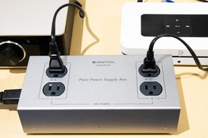 クリプトンの4口の電源ボックス「PB-150」を使うのはどうだろう。3万円代の製品だが、良質な電源ケーブルも付属しているし、オーディオ用としてきちんとしたモノ作りがされている。ボディは厚みのあるスチール製で、ACインレットやコンセント、内部配線材の選択にも気を使っている。そして、電源フィルターが2系統分採用されているのも大きな特徴だ。「大電流機器・高ノイズ機器」(こちらにアンプの電源ケーブルを挿す)と「小電流機器」(ストリーマーの電源)というように、分離しての接続ができて、ふたつのコンポーネントの相互影響をかなり軽減してくれる。